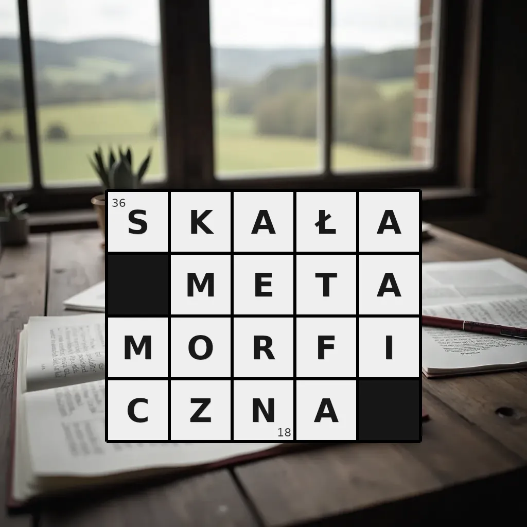 Słowo „skała metamorficzna” ma 18 znaków (bez spacji i łączników).