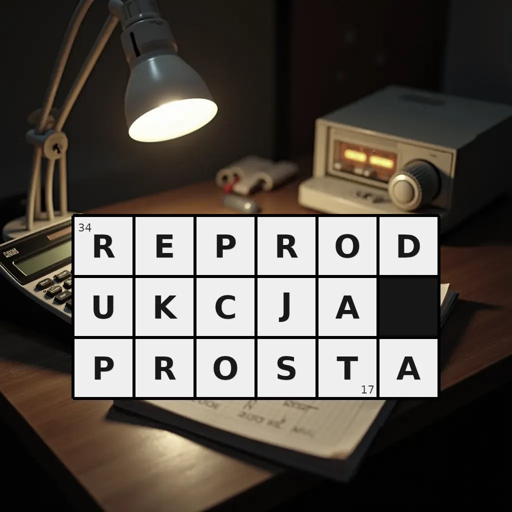 Słowo „reprodukcja prosta” ma 17 znaków (bez spacji i łączników).