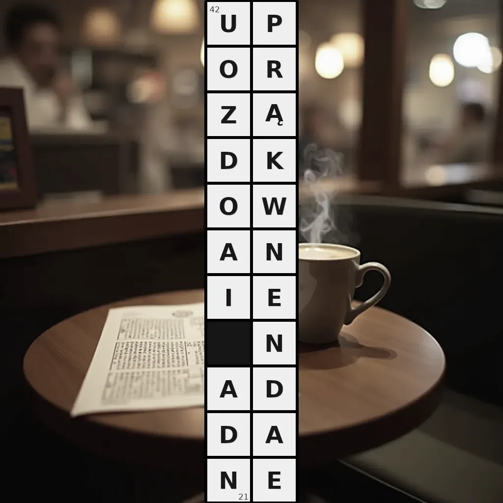 Słowo „uporządkowanie naddane” ma 21 znak (bez spacji i łączników).