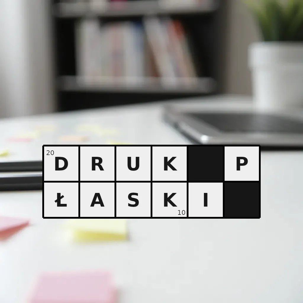 Słowo „druk płaski” ma 10 znaków (bez spacji i łączników).