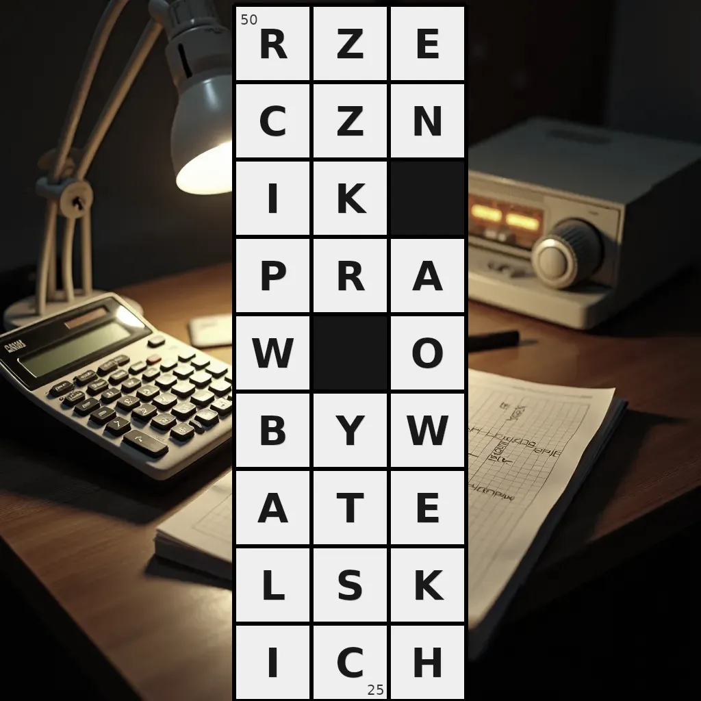 Zawiera litery: A, A, B, C, C, E, E, H, I, I, K, K, L, N, O, P, R, R, S, T, W, W, Y, Z, Z