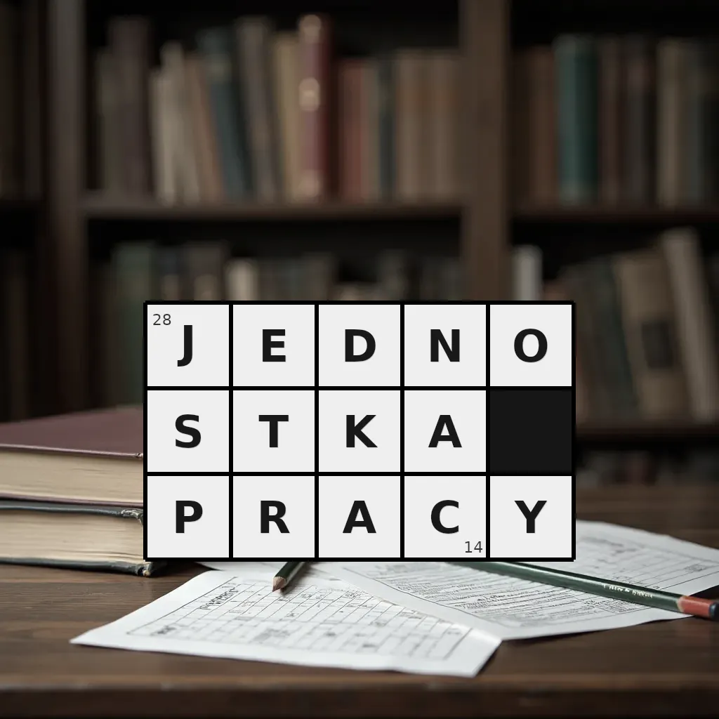 Słowo „jednostka pracy” ma 14 znaków (bez spacji i łączników).