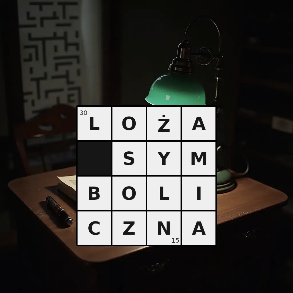 Słowo „loża symboliczna” ma 15 znaków (bez spacji i łączników).