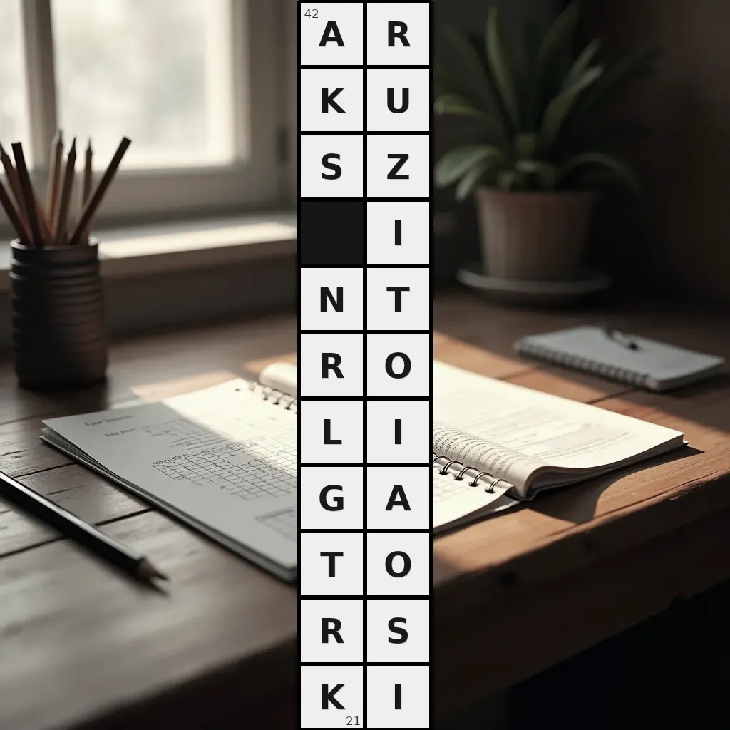 Zawiera litery: A, A, G, I, I, I, K, K, L, N, O, O, R, R, R, S, S, T, T, U, Z