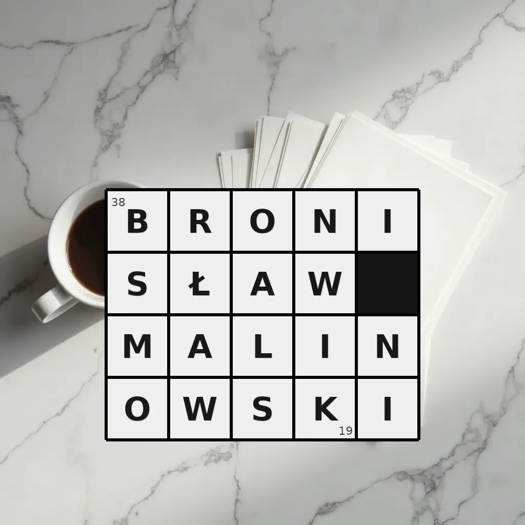 Słowo „bronisław malinowski” ma 19 znaków (bez spacji i łączników).