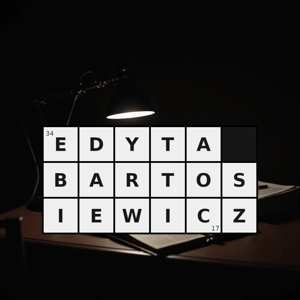 Słowo „edyta bartosiewicz” ma 17 znaków (bez spacji i łączników).