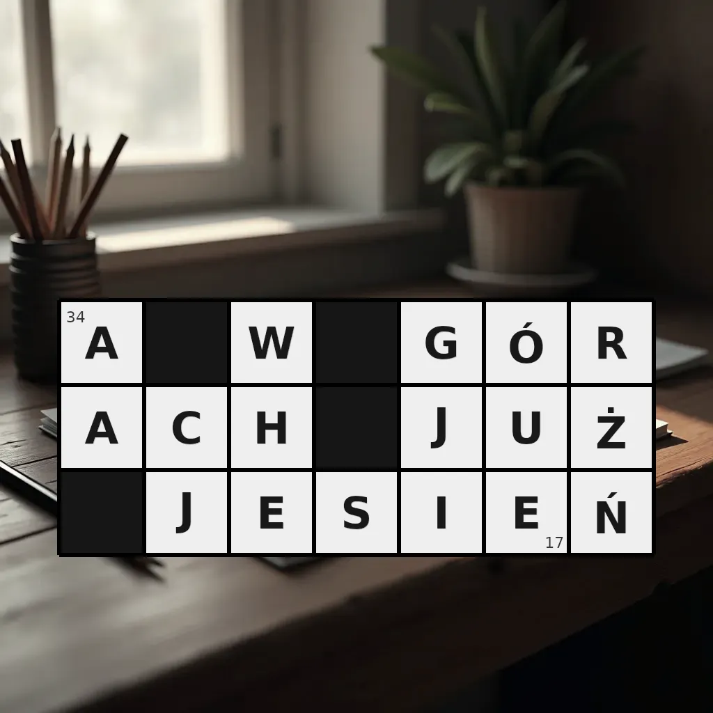 Słowo „a w górach już jesień” ma 17 znaków (bez spacji i łączników).
