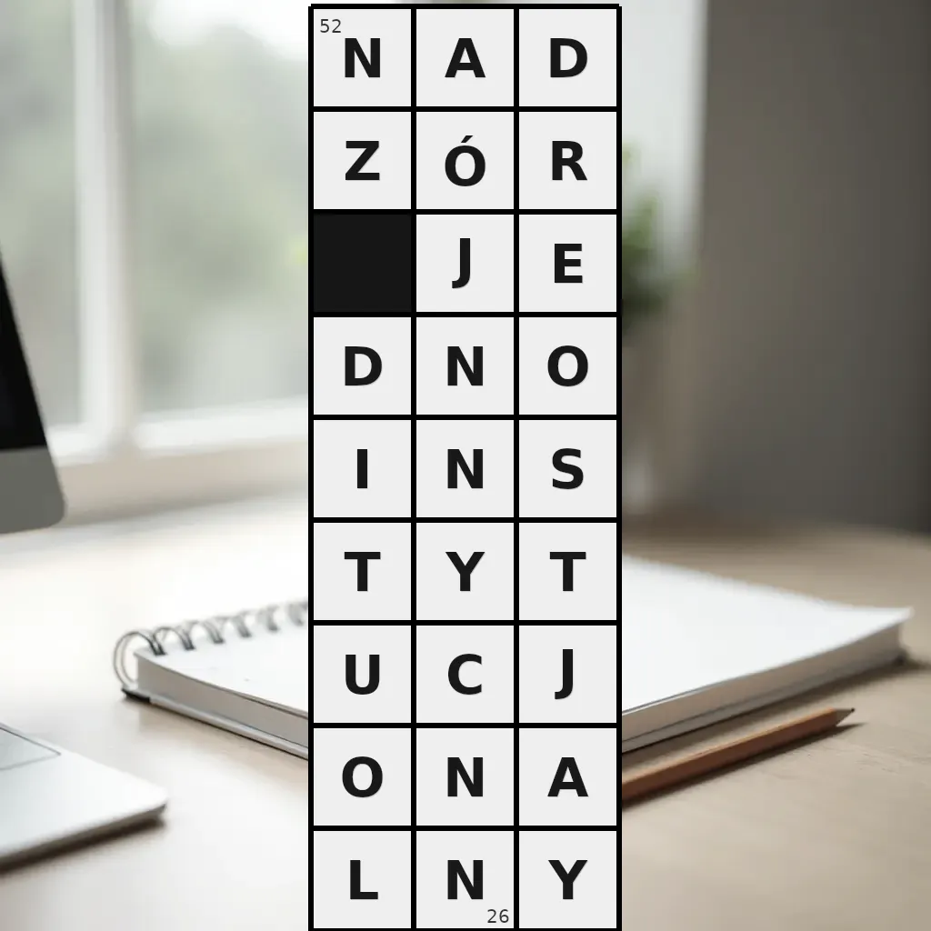Słowo „nadzór jednoinstytucjonalny” ma 26 znaków (bez spacji i łączników).