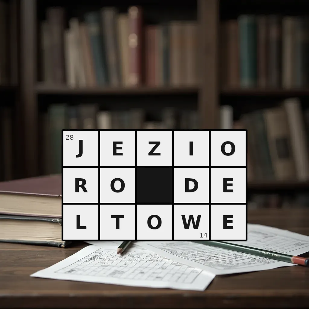 Słowo „jezioro deltowe” ma 14 znaków (bez spacji i łączników).