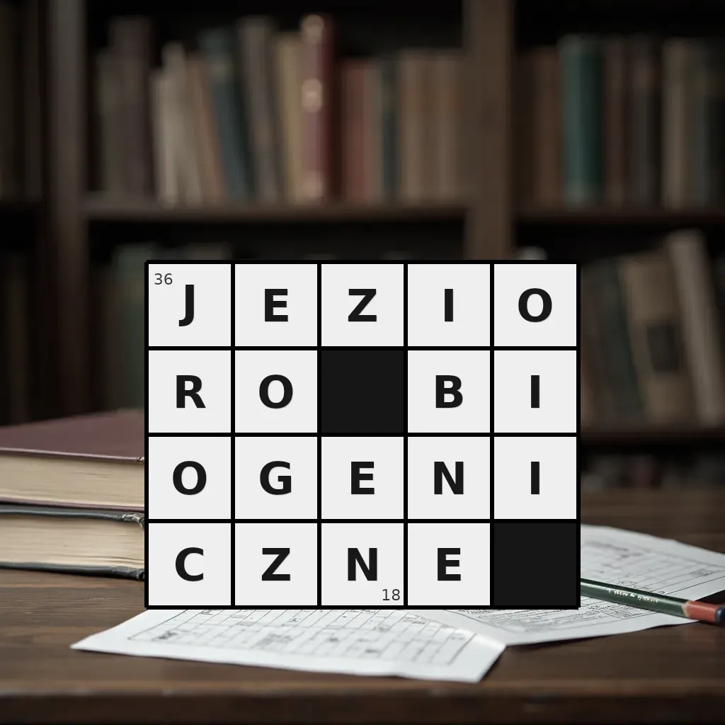 Słowo „jezioro biogeniczne” ma 18 znaków (bez spacji i łączników).