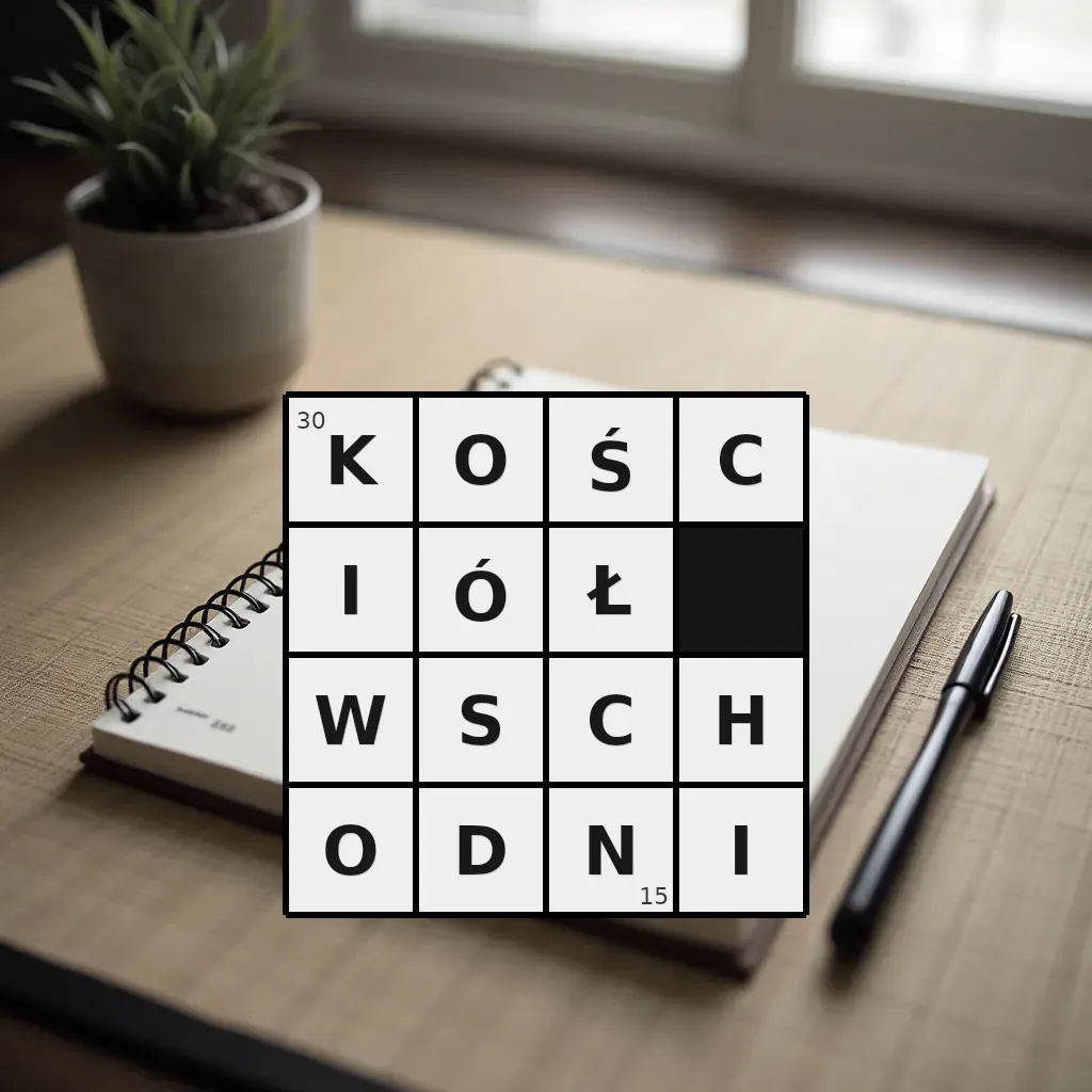 Słowo „kościół wschodni” ma 15 znaków (bez spacji i łączników).
