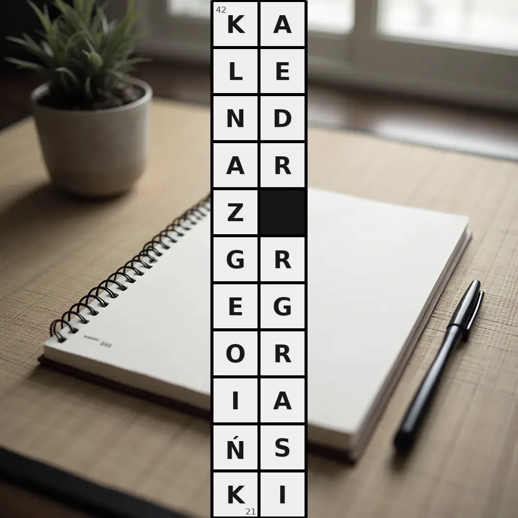 Słowo „kalendarz gregoriański” ma 21 znak (bez spacji i łączników).