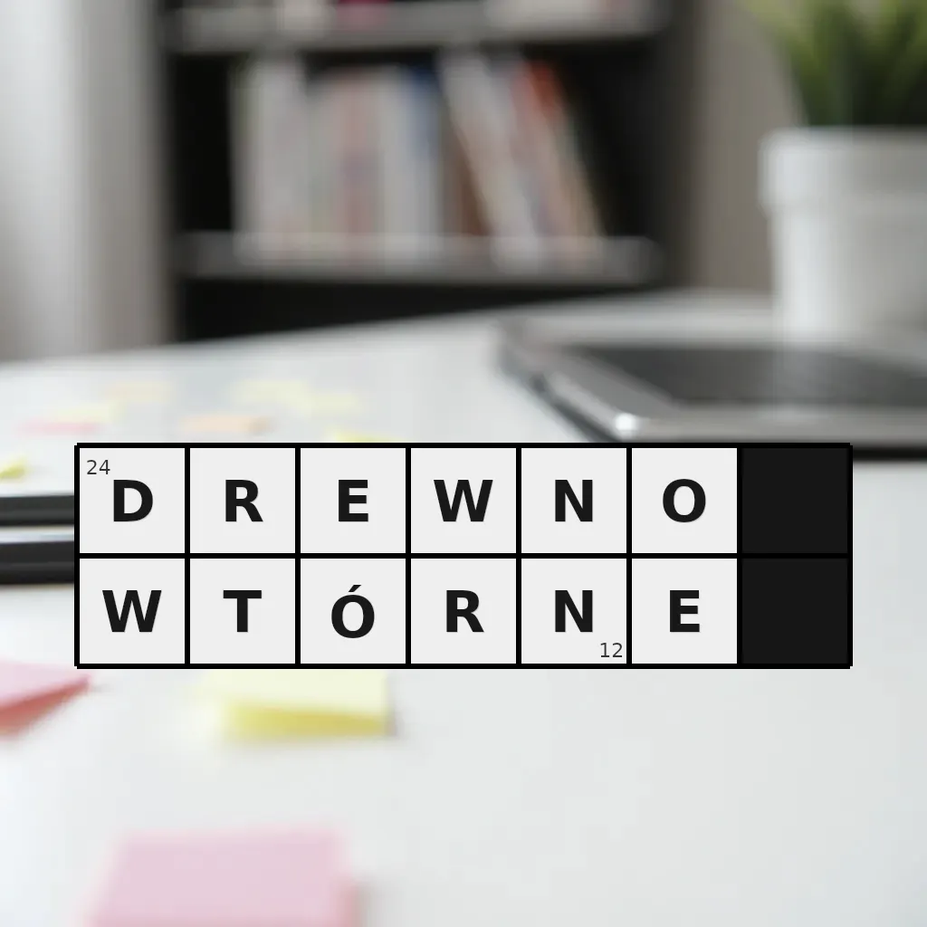 Słowo „drewno wtórne” ma 12 znaków (bez spacji i łączników).