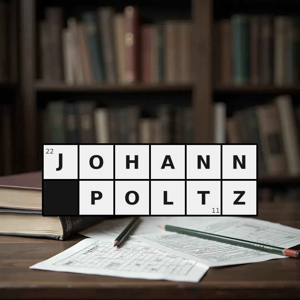 Słowo „johann poltz” ma 11 znaków (bez spacji i łączników).
