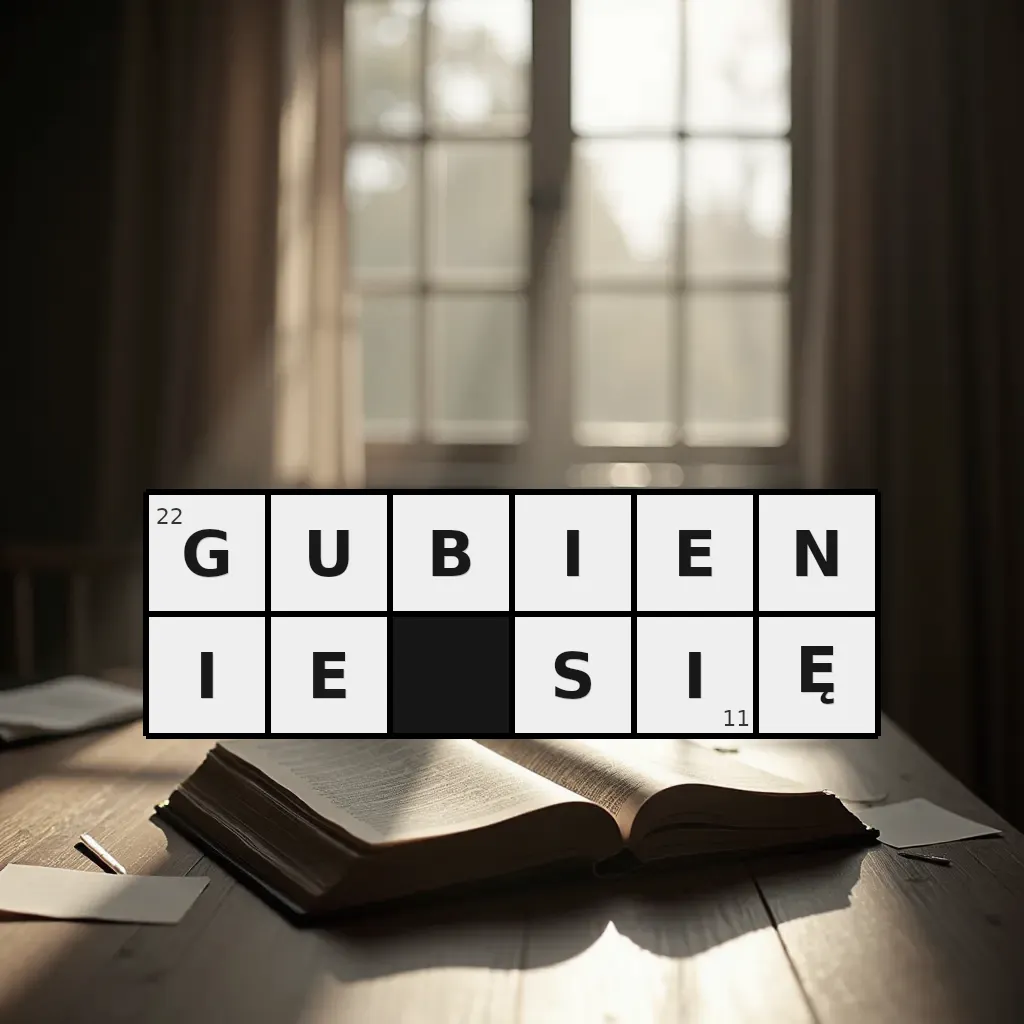Słowo „gubienie się” ma 11 znaków (bez spacji i łączników).
