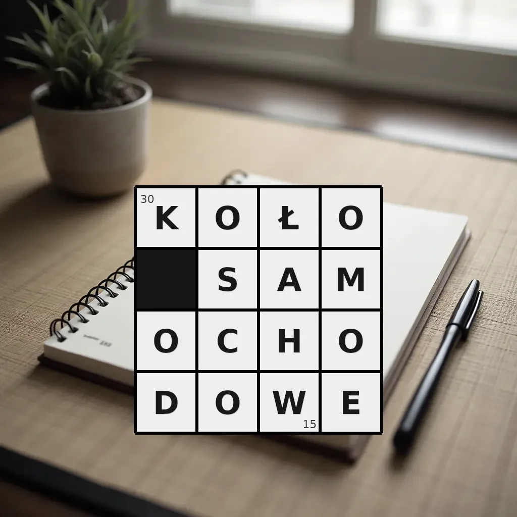 Słowo „koło samochodowe” ma 15 znaków (bez spacji i łączników).