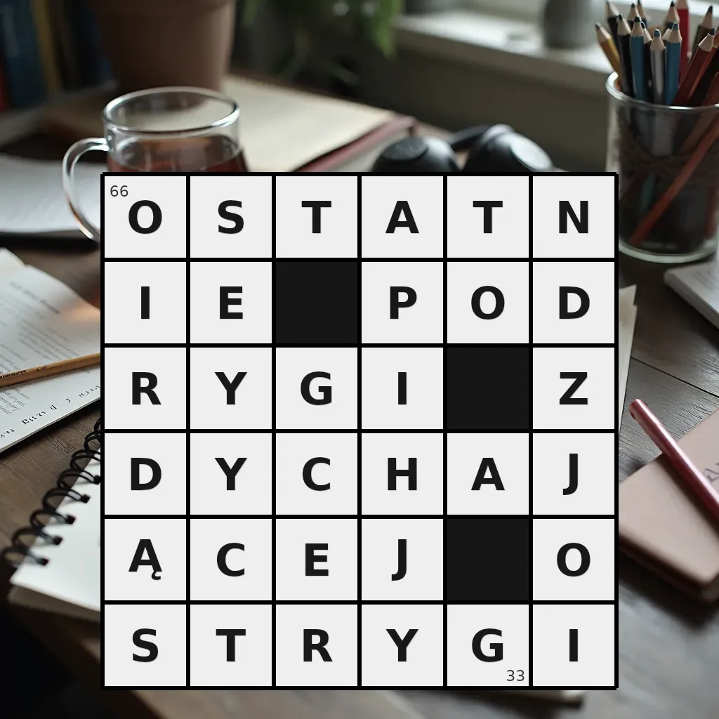 Słowo „ostatnie podrygi zdychającej ostrygi” ma 33 znaki (bez spacji i łączników).