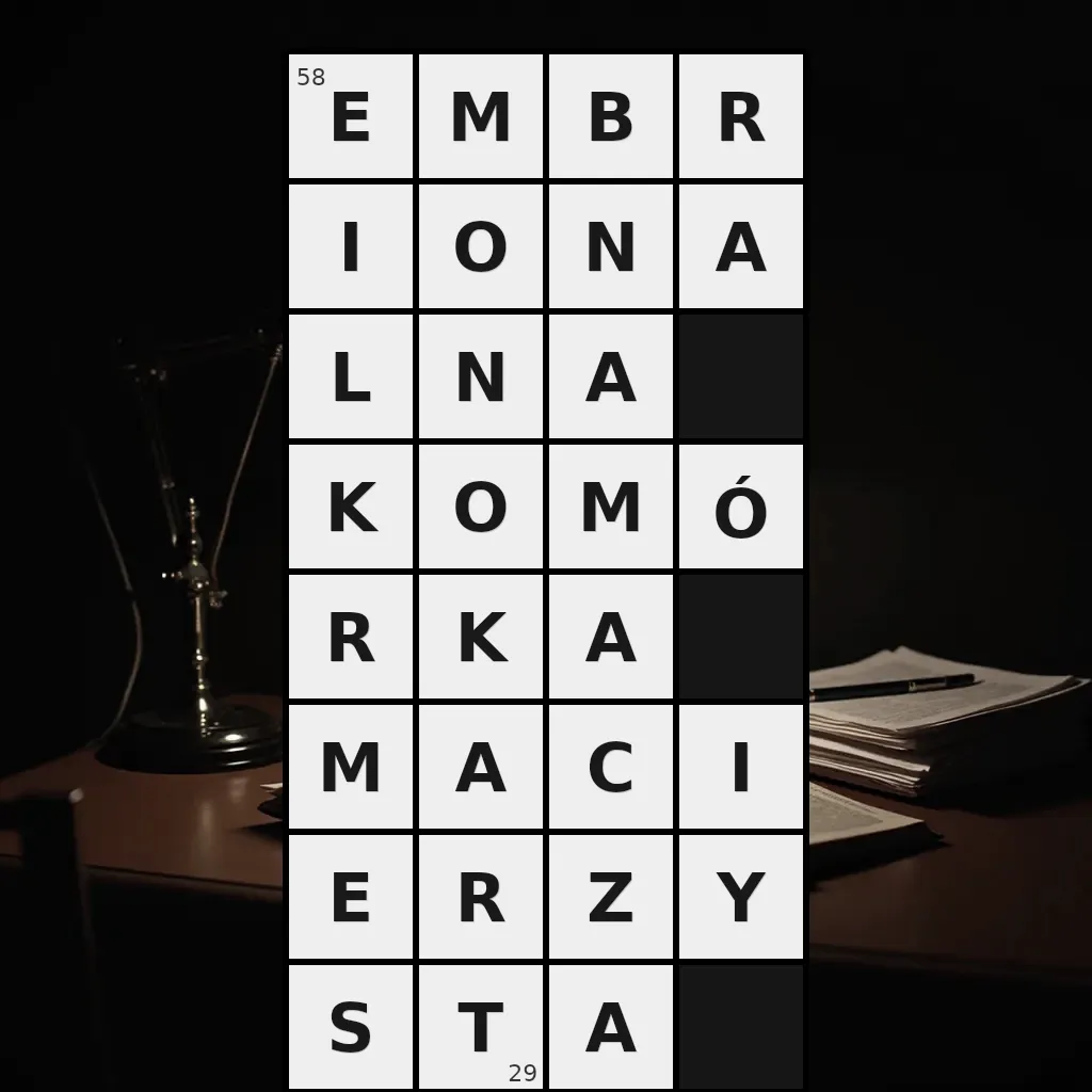Słowo „embrionalna komórka macierzysta” ma 29 znaków (bez spacji i łączników).