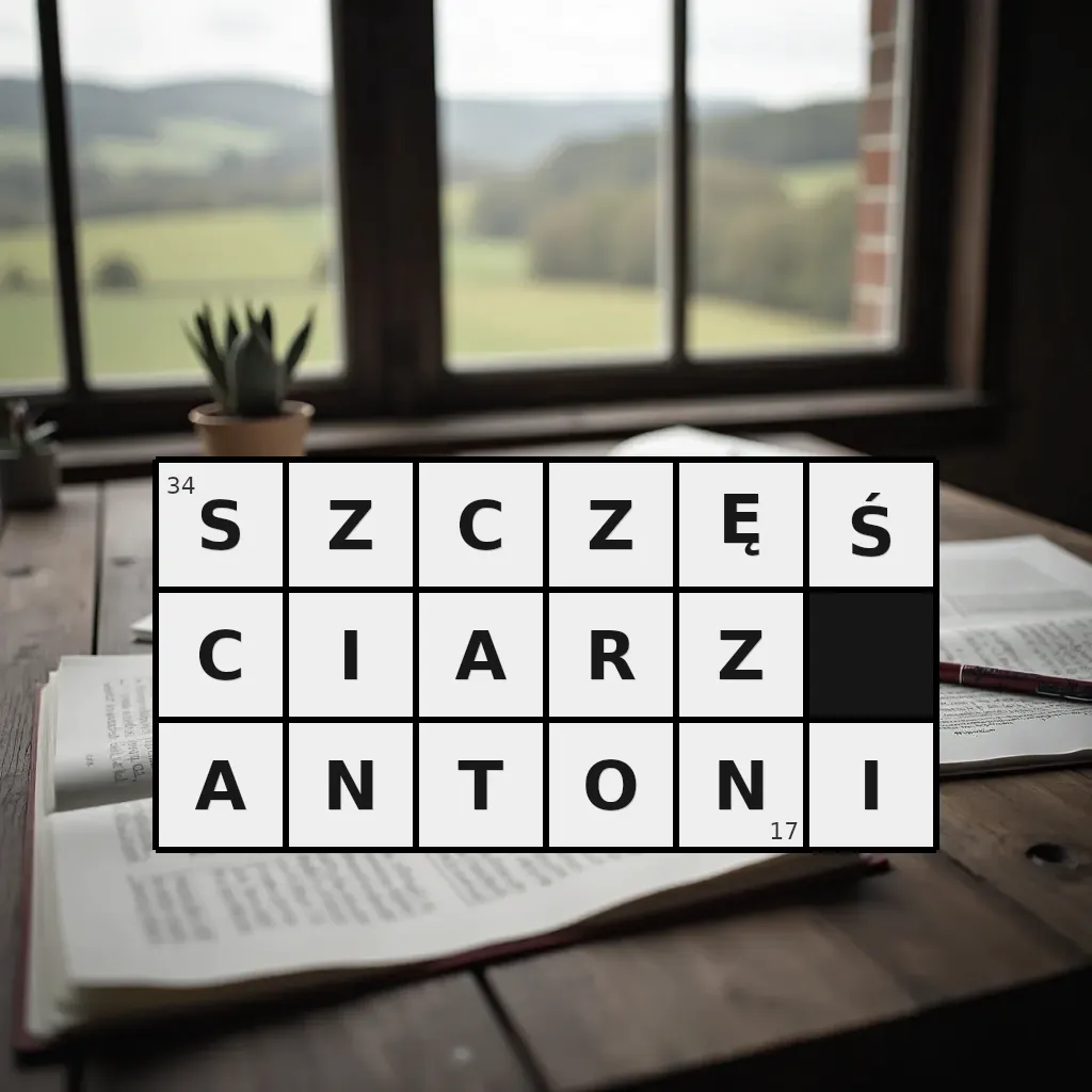 Słowo „szczęściarz antoni” ma 17 znaków (bez spacji i łączników).