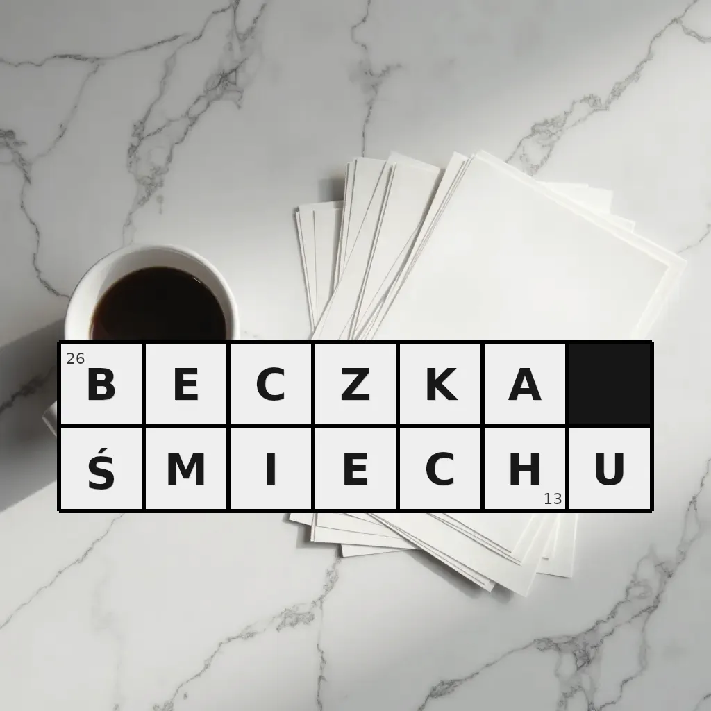Słowo „beczka śmiechu” ma 13 znaków (bez spacji i łączników).