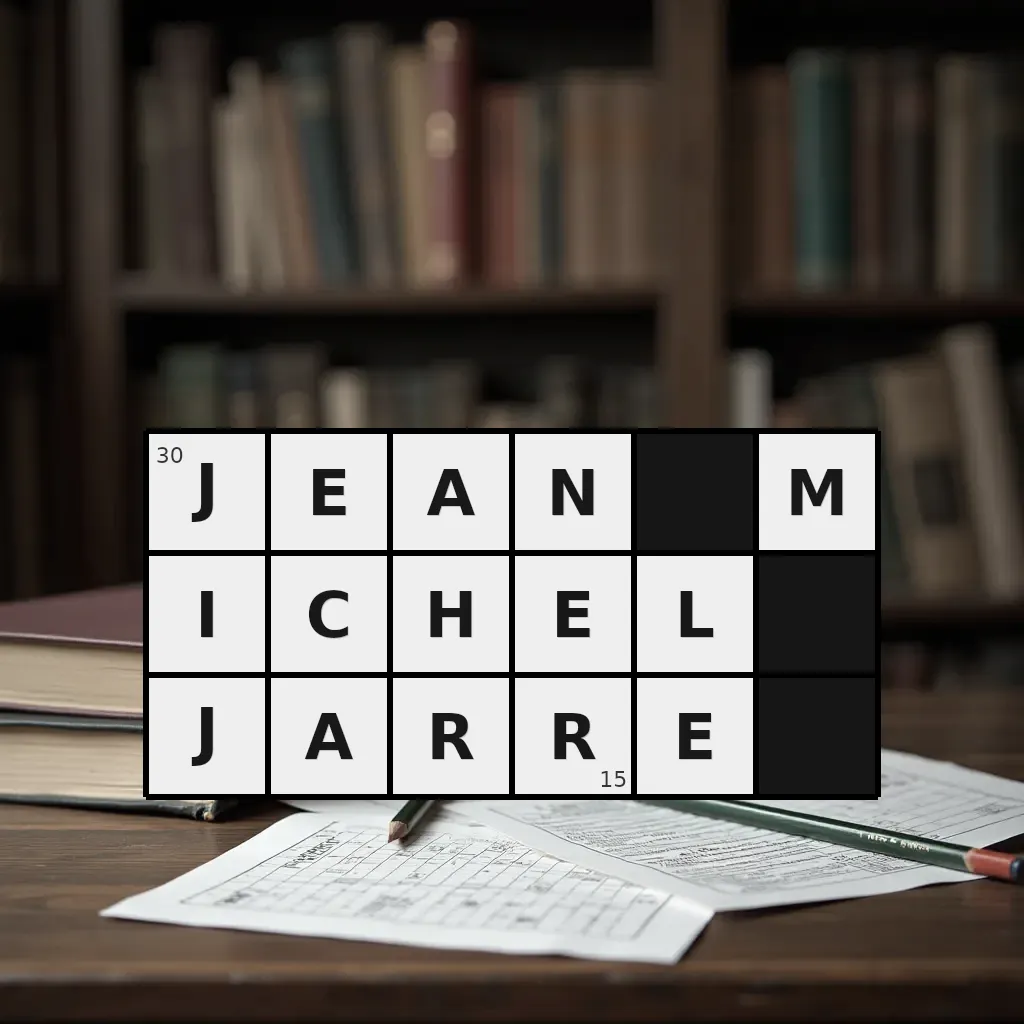 Słowo „jean michel jarre” ma 15 znaków (bez spacji i łączników).