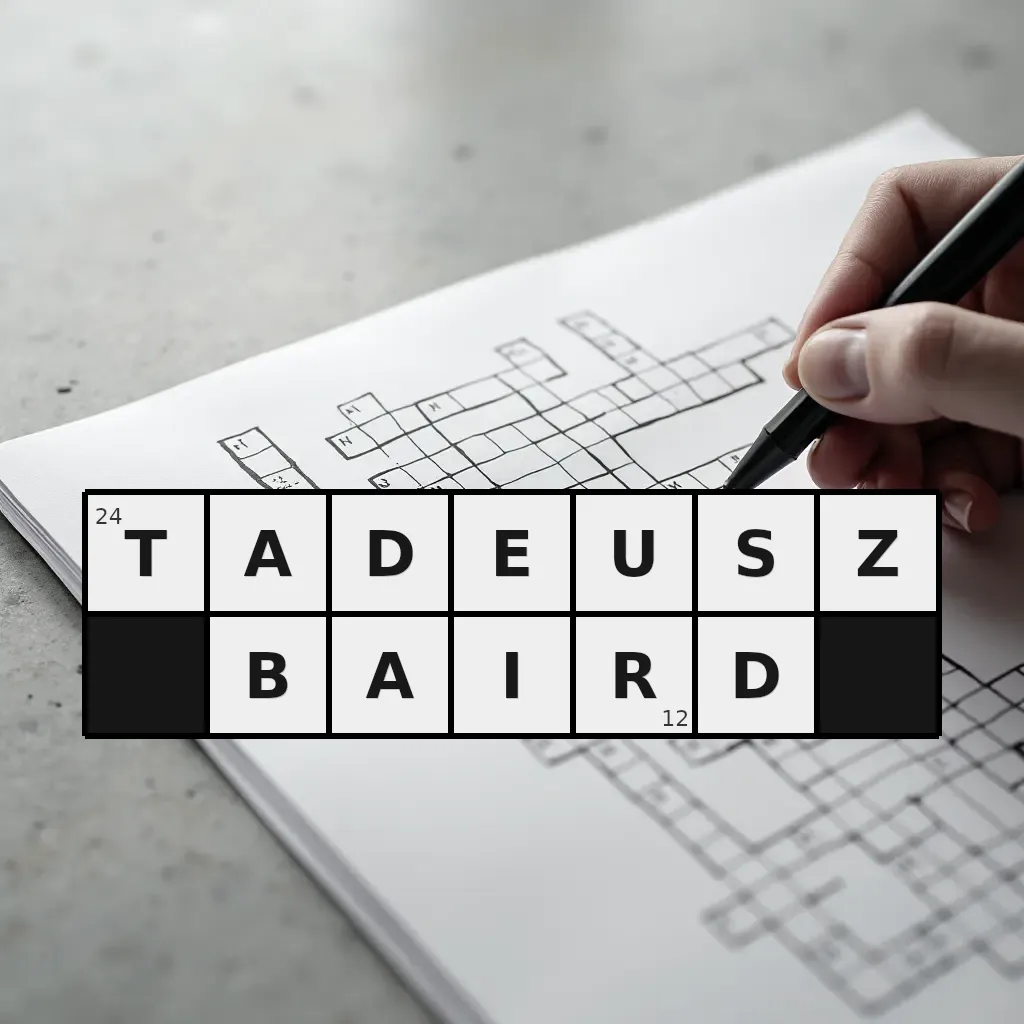 Słowo „tadeusz baird” ma 12 znaków (bez spacji i łączników).