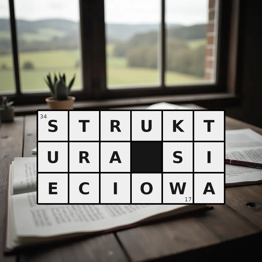 Słowo „struktura sieciowa” ma 17 znaków (bez spacji i łączników).
