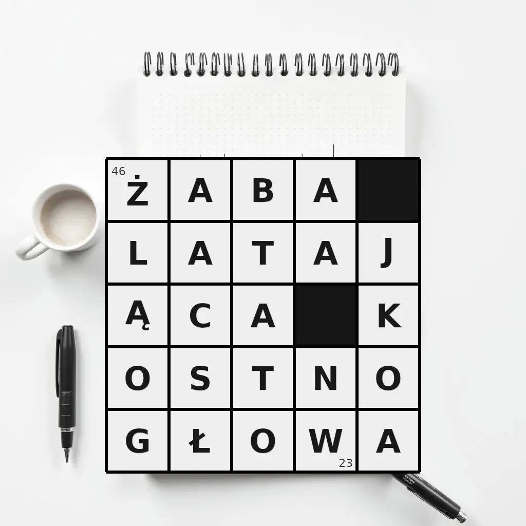 Słowo „żaba latająca kostnogłowa” ma 23 znaki (bez spacji i łączników).