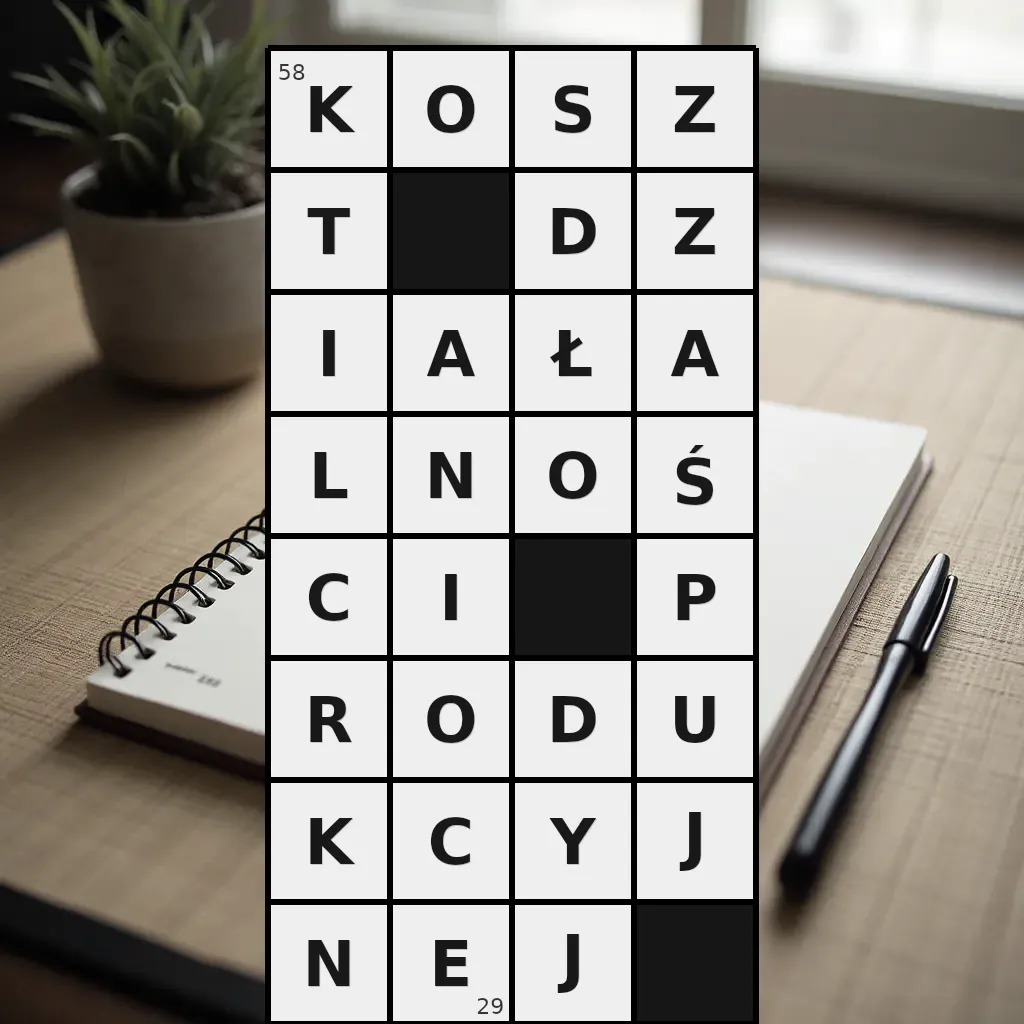 Słowo „koszt działalności produkcyjnej” ma 29 znaków (bez spacji i łączników).
