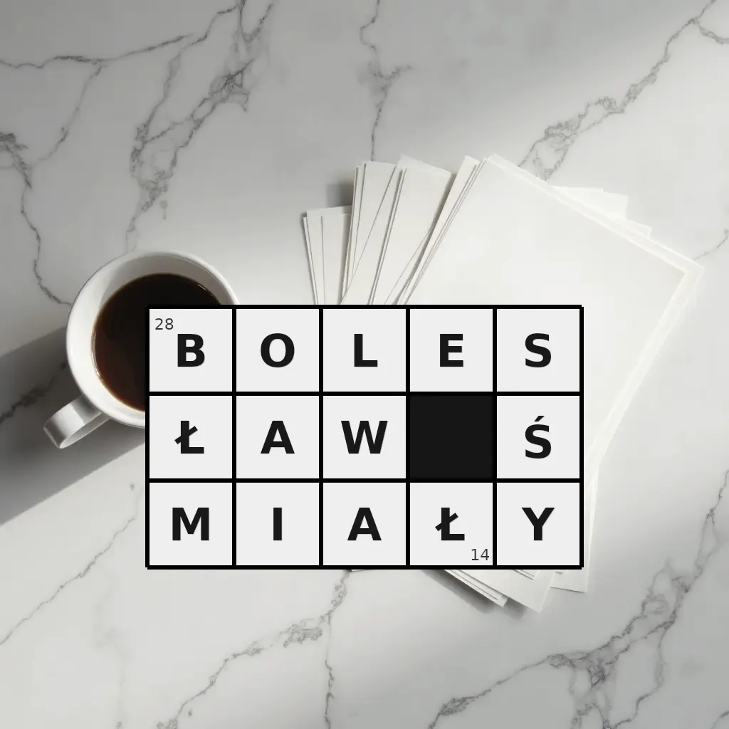 Słowo „bolesław śmiały” ma 14 znaków (bez spacji i łączników).