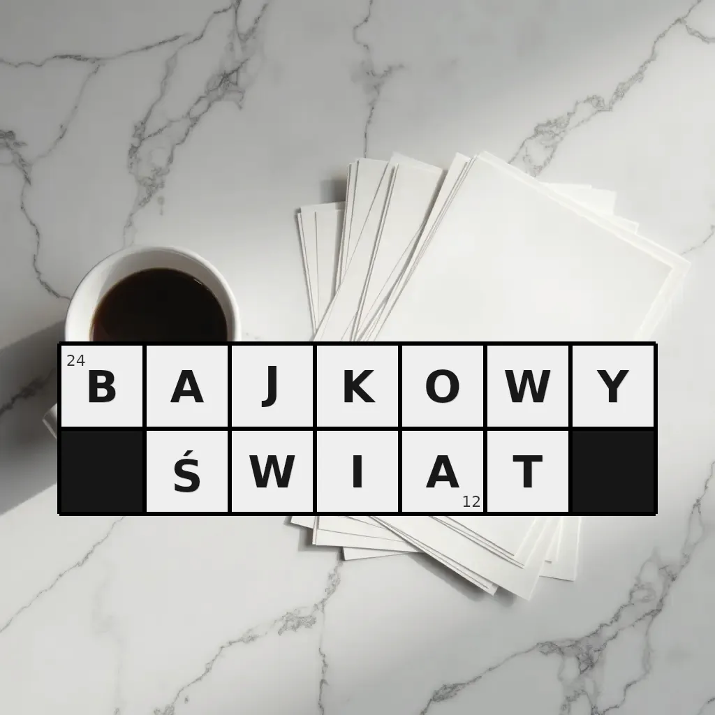 Słowo „bajkowy świat” ma 12 znaków (bez spacji i łączników).