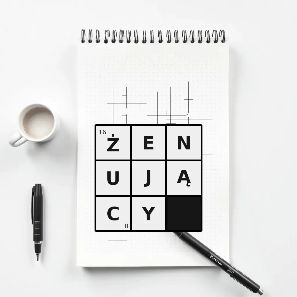 Słowo „żenujący” ma 8 znaków (bez spacji i łączników).