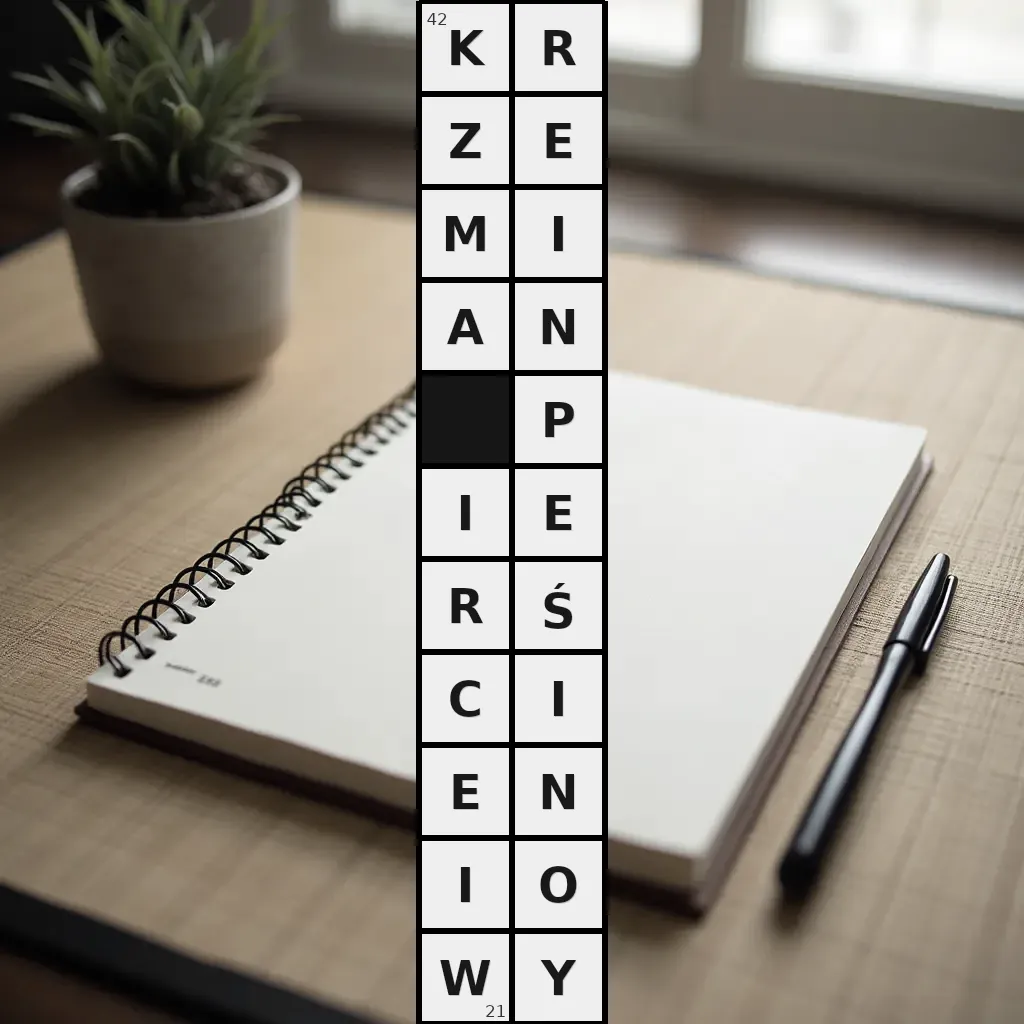 Słowo „krzemian pierścieniowy” ma 21 znak (bez spacji i łączników).