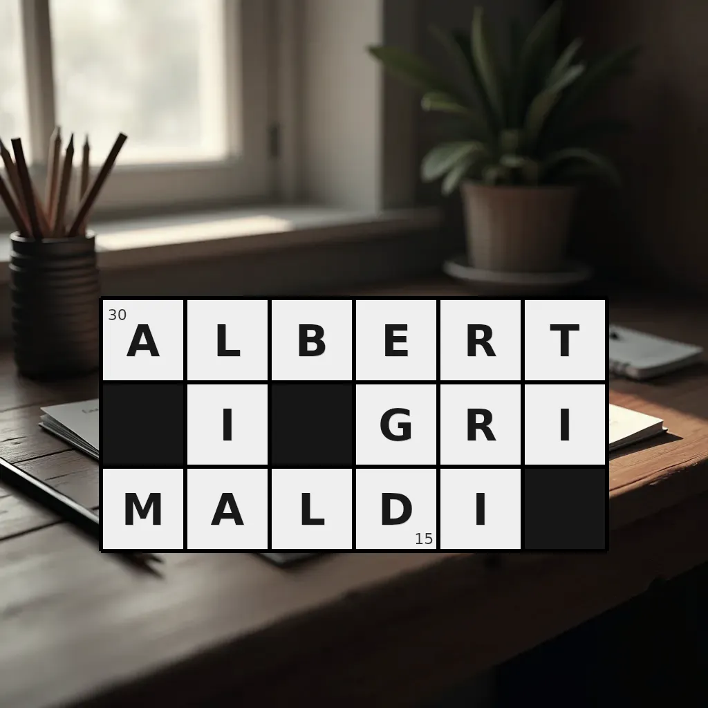 Słowo „albert i grimaldi” ma 15 znaków (bez spacji i łączników).