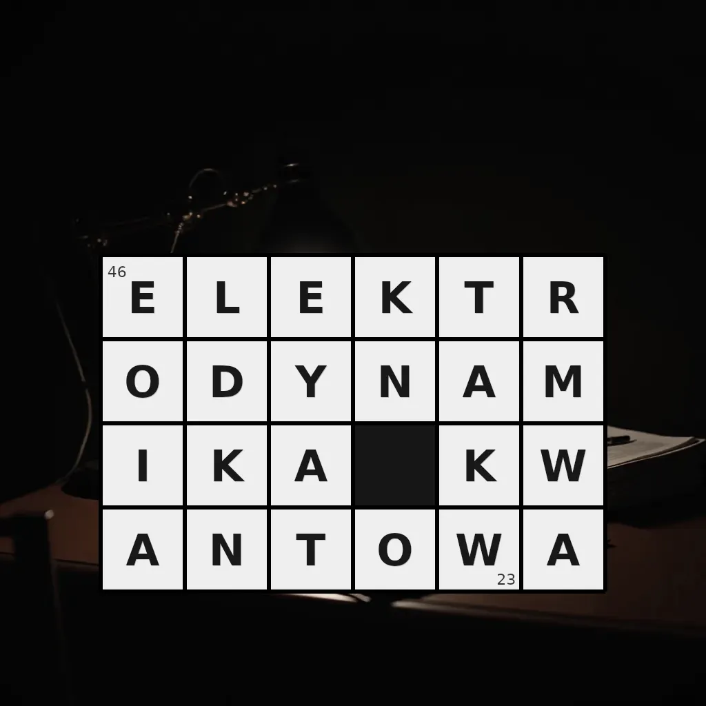 Słowo „elektrodynamika kwantowa” ma 23 znaki (bez spacji i łączników).