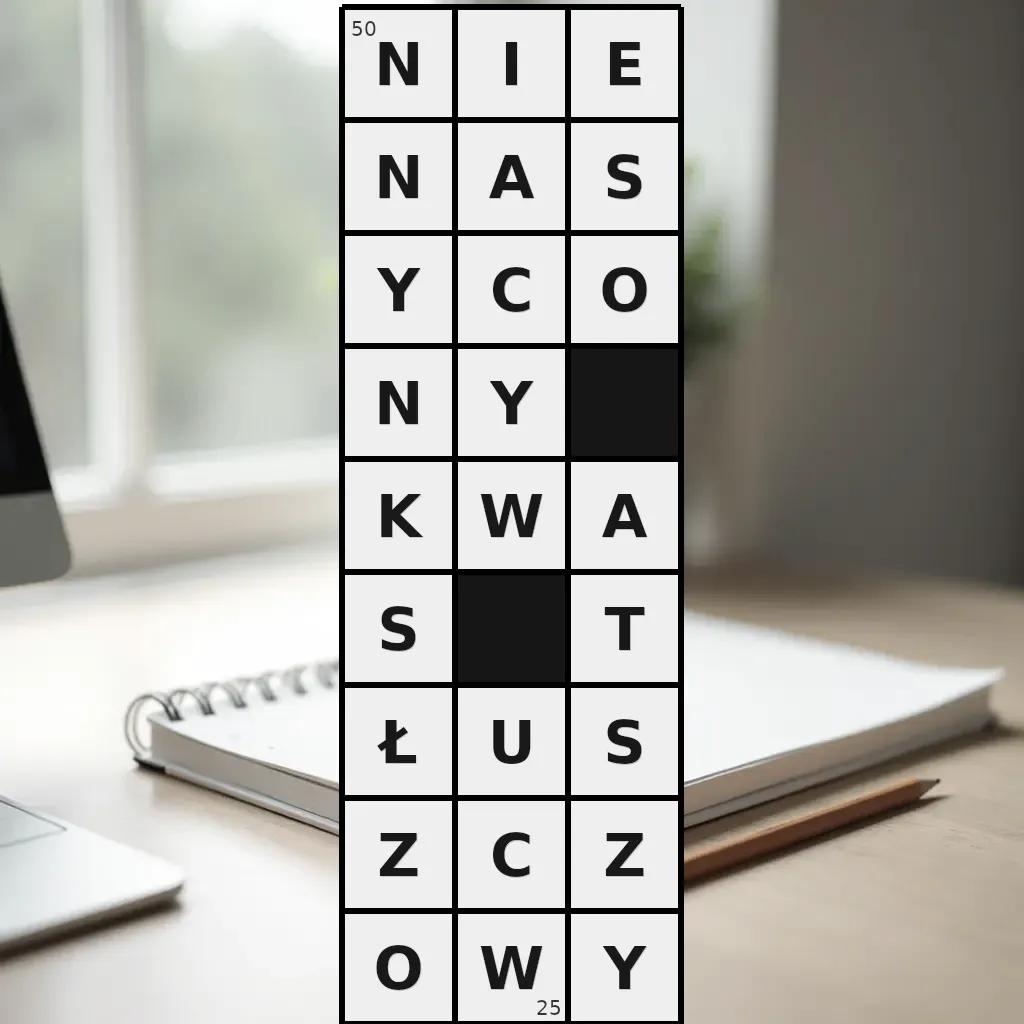 Słowo „nienasycony kwas tłuszczowy” ma 25 znaków (bez spacji i łączników).