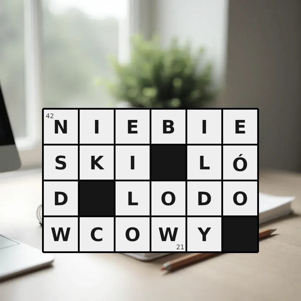 Słowo „niebieski lód lodowcowy” ma 21 znak (bez spacji i łączników).