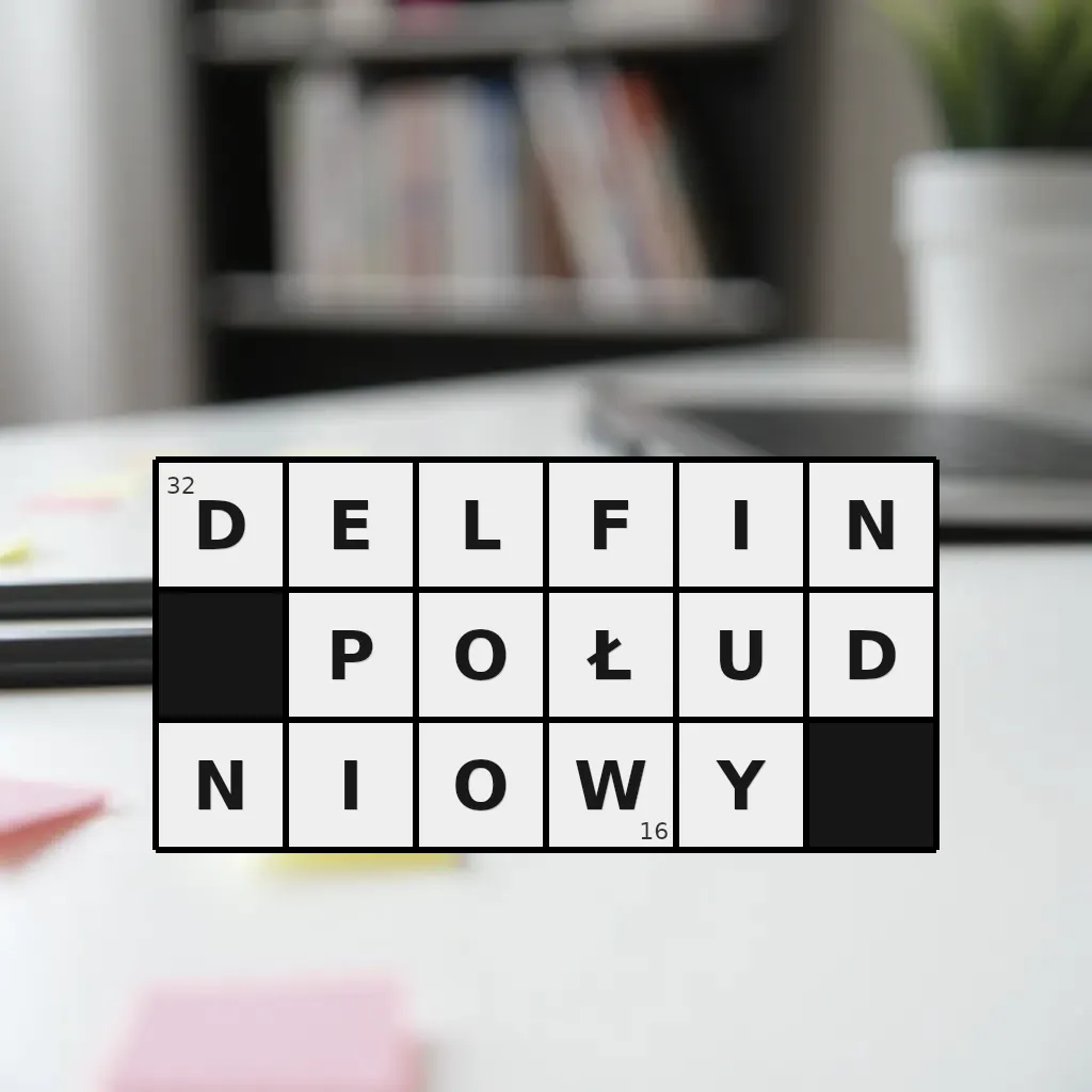 Słowo „delfin południowy” ma 16 znaków (bez spacji i łączników).