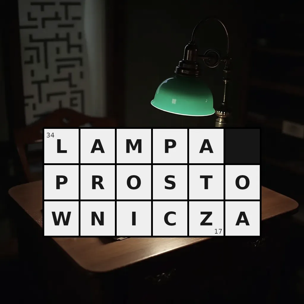 Słowo „lampa prostownicza” ma 17 znaków (bez spacji i łączników).