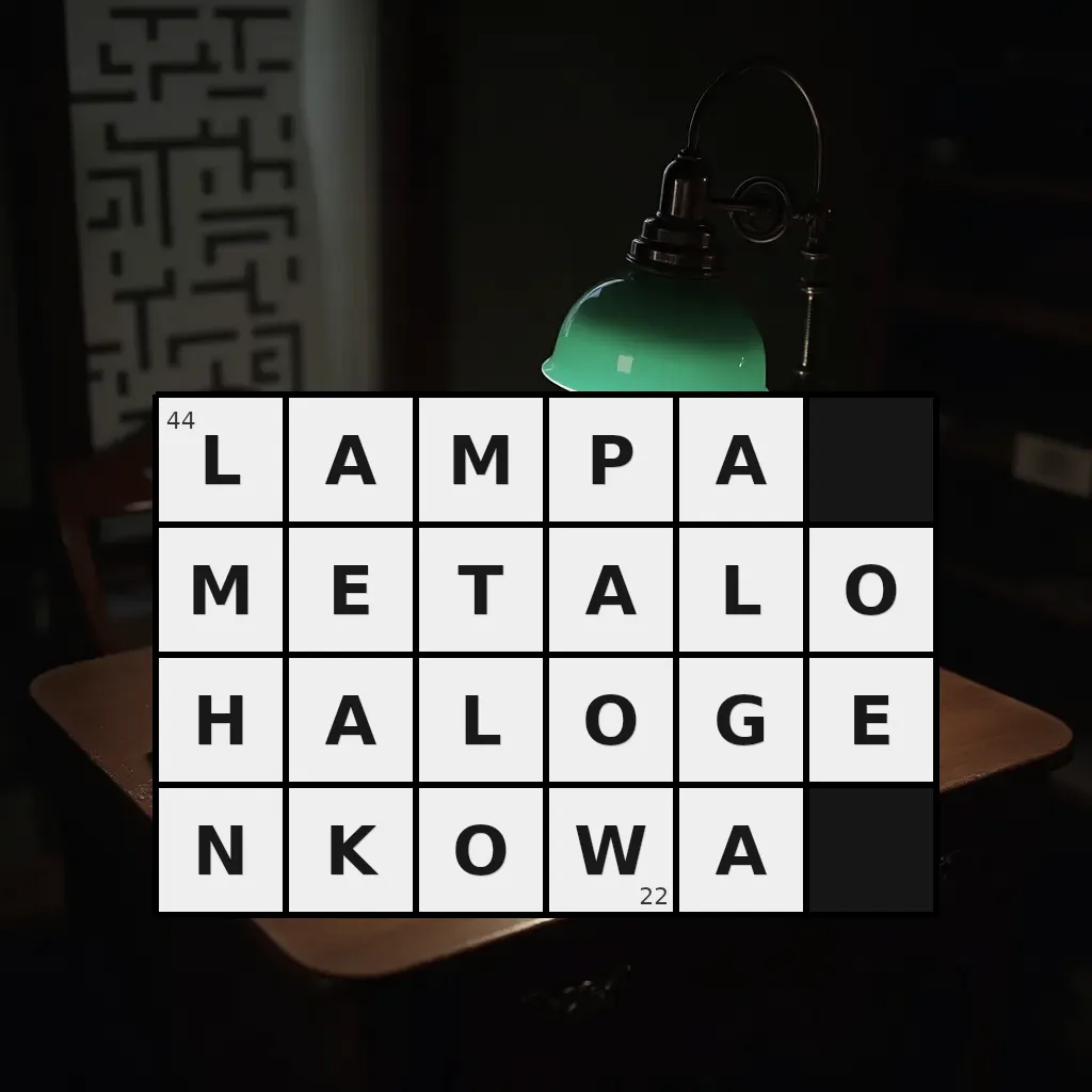 Słowo „lampa metalohalogenkowa” ma 22 znaki (bez spacji i łączników).