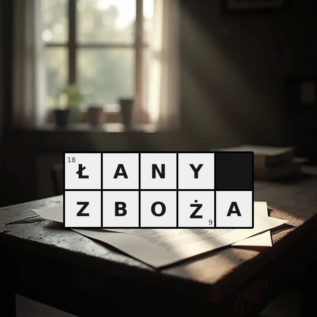 Słowo „łany zboża” ma 9 znaków (bez spacji i łączników).
