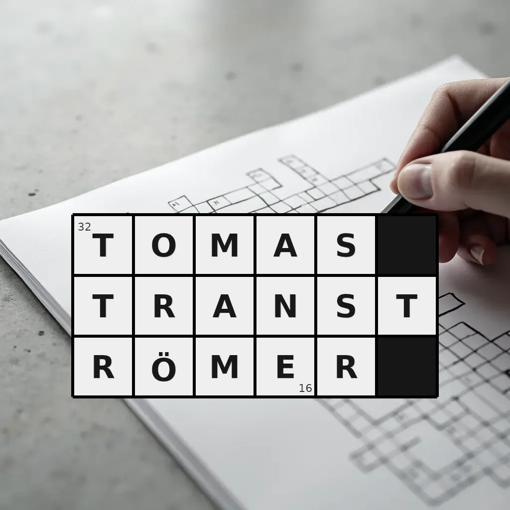 Słowo „tomas tranströmer” ma 16 znaków (bez spacji i łączników).