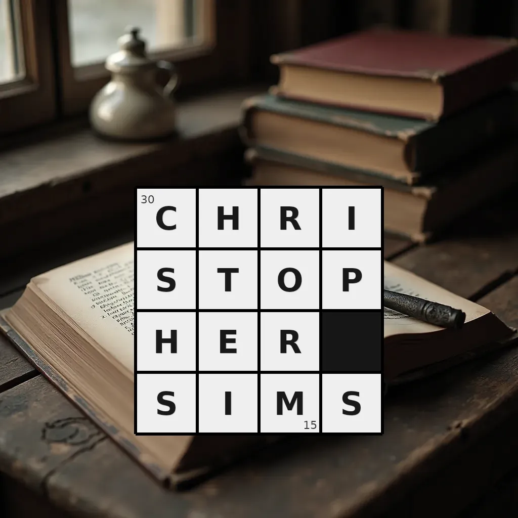 Słowo „christopher sims” ma 15 znaków (bez spacji i łączników).