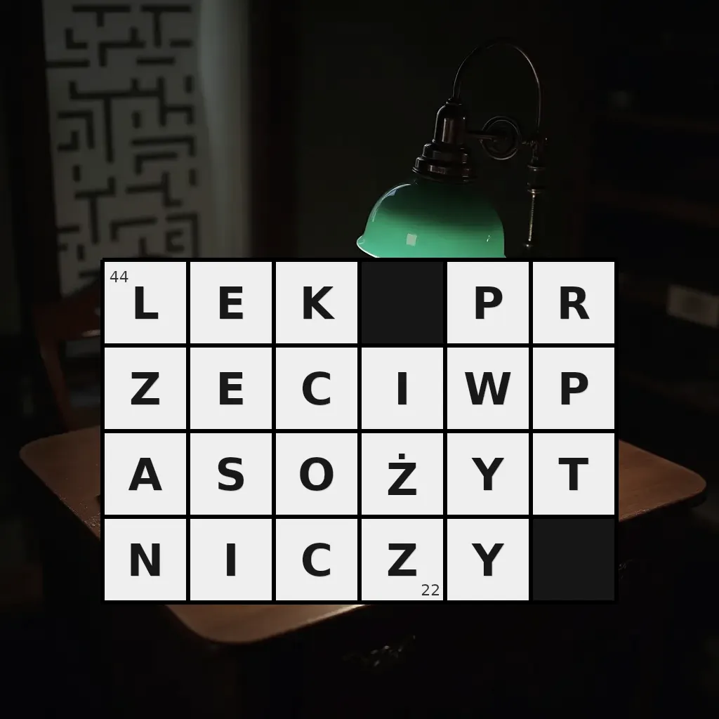 Słowo „lek przeciwpasożytniczy” ma 22 znaki (bez spacji i łączników).
