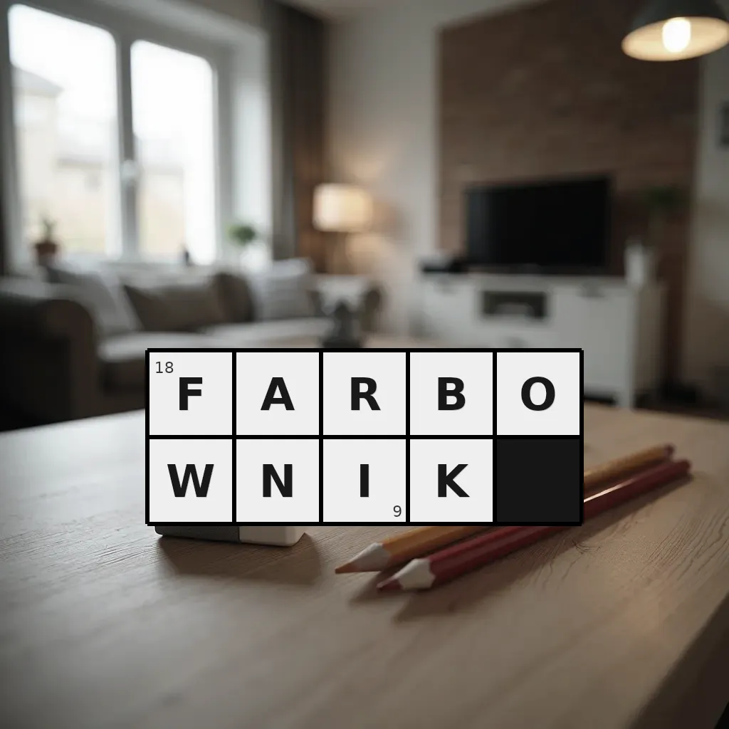 Słowo „farbownik” ma 9 znaków (bez spacji i łączników).