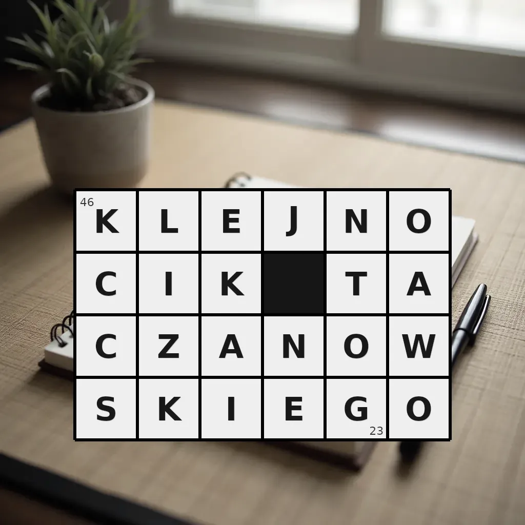 Słowo „klejnocik taczanowskiego” ma 23 znaki (bez spacji i łączników).
