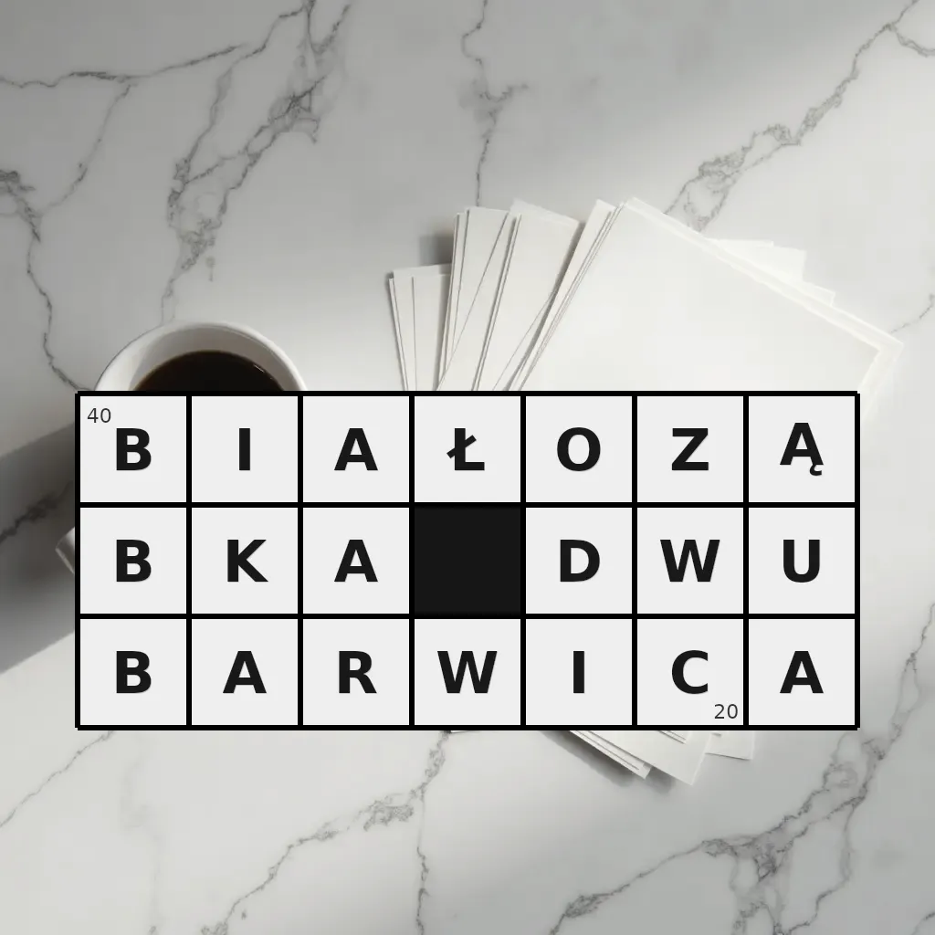 Słowo „białoząbka dwubarwica” ma 20 znaków (bez spacji i łączników).
