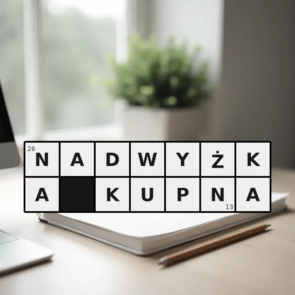 Słowo „nadwyżka kupna” ma 13 znaków (bez spacji i łączników).