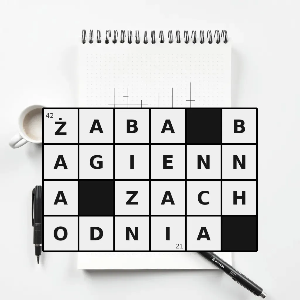 Słowo „żaba bagienna zachodnia” ma 21 znak (bez spacji i łączników).