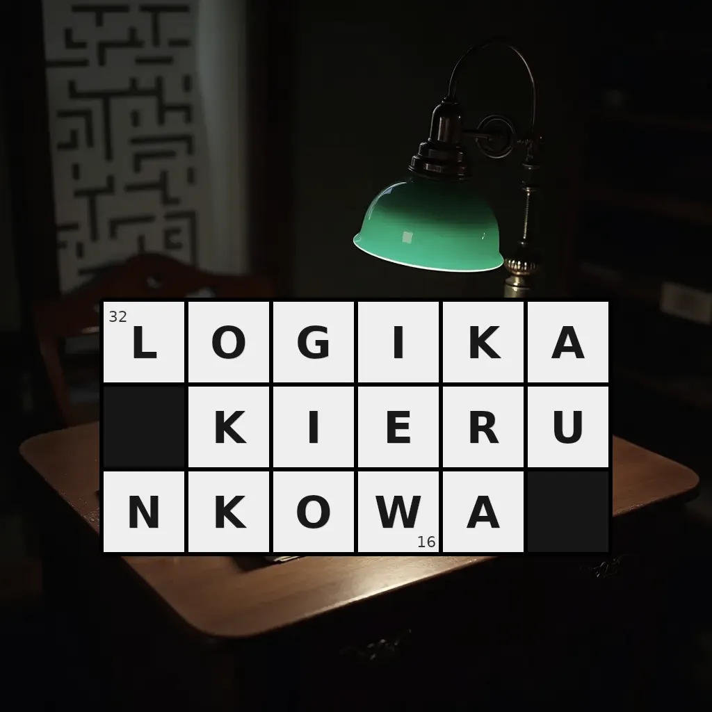 Słowo „logika kierunkowa” ma 16 znaków (bez spacji i łączników).